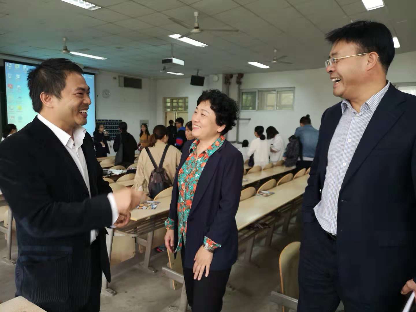 2018年10月8日下午,省委高教工委副书记陈乃霞、省委高教工委组织部副部长王亚新莅临公司检查指导工作,并深入思想政治理论课课堂听课。