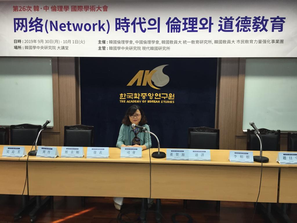 会议设8分论坛,分别是东洋伦理思想与道德教育西洋伦理思想与道德教育Internet时代的道德教育人工智能(AI)与伦理政治·经济·社会的正义和伦理网络(Network)社会的道德教育技术发展与道德教育的课题”、“网络社会的伦理价值”,中韩两国学者共同分享了从多重视角研究网络时代的伦理问题与道德教育的相关学术成果,为走出网络时代的伦理困境提出了多向度的建设性方案。应韩国伦理学会的邀请,陈丛兰教授做了题为“以门探政,中国古代门的政治伦理意蕴”的学术报告,并受到与会专家学者的关注。