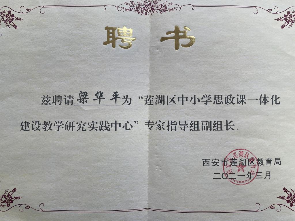公司梁华平副教授受聘为莲湖区中小学思政课一体化建设专家指导组副组长