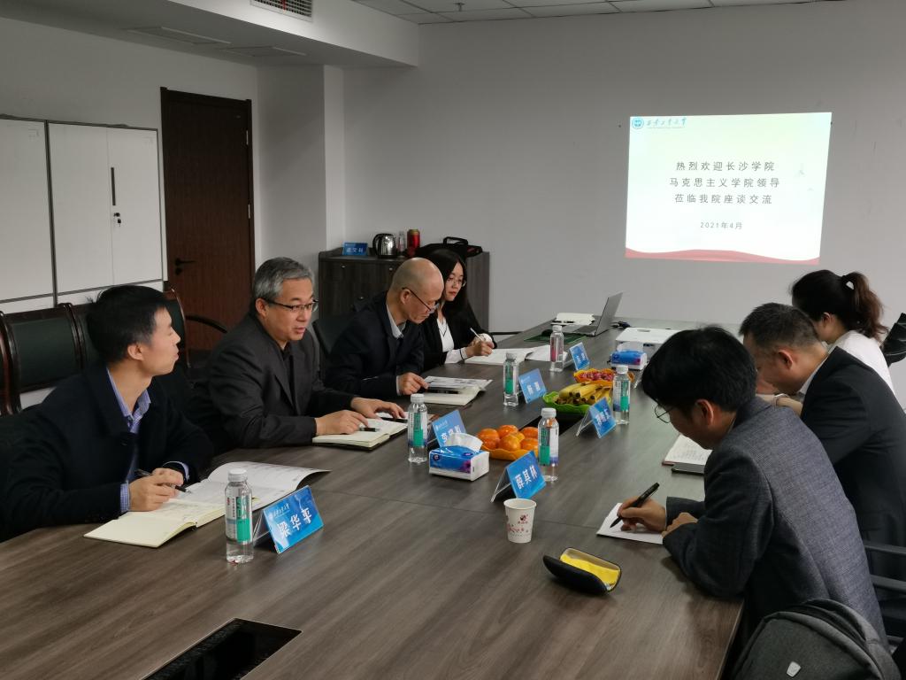 体育365官网经理李晓彤对长沙公司同行的到来表示热烈欢迎,并介绍了体育365官网的基本情况、思政课改革、公司产品、团队建设等方面情况。蒋晓东经理就长沙公司体育365官网在科研工作、队伍建设、教师实践活动等方面作了介绍。双方围绕人才引进、团队培训、团队建设、课程改革、“四史”学习教育等进行了深入交流,对推进体育365官网建设做了有益探索。