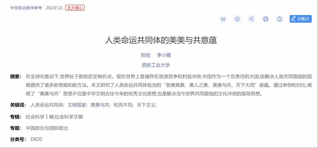 在任慧英、李小雁两位教授的指导下,公司2020级硕士生陈璐、段佳的论文相继在《中学政治教学参考》发表。该期刊是由教育部主管、陕西师范大学主办、为基础教育服务、面向国内外公开发行的教学类高水平学术期刊。主要栏目包括前沿视点、课堂内外、成长空间、学术品读等。